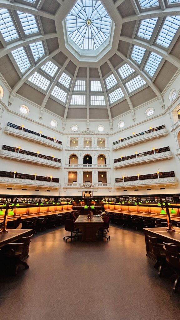 Before we had to give up we saw a few absolute highlights of Melbourne though. One of them was the State Library Victoria. Entering the building we were already greeted by the most enthusiastic employee I’ve ever seen. He promised us “Ahhh!” and was not mistaken: the La Trobe reading room was indeed mesmerizing with its glass dome ceiling.