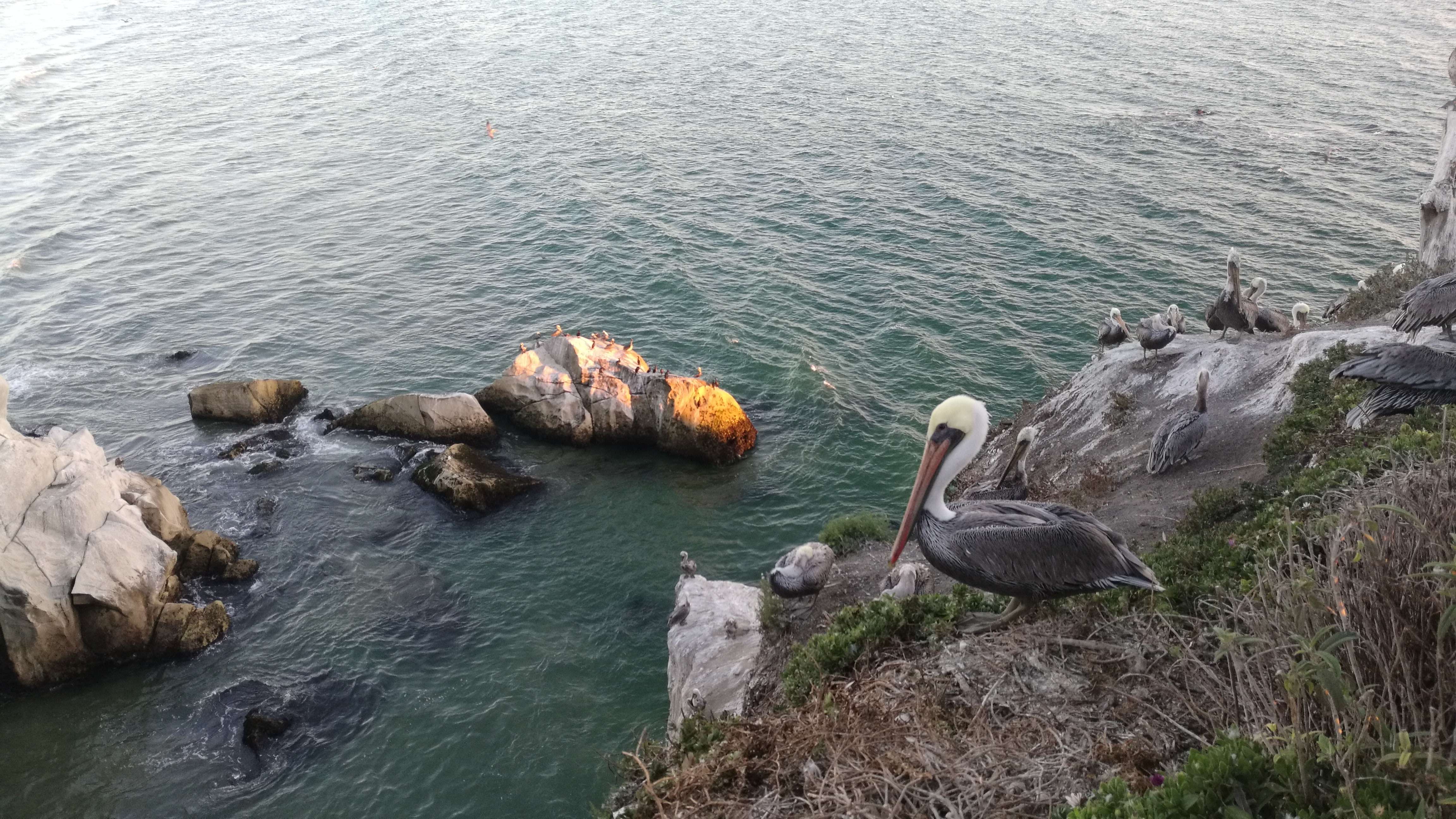 These pelicans nest on the cliffs underneath the hotel grounds. Especially at sunset you see them flying around the hotel gardens in big flocks.