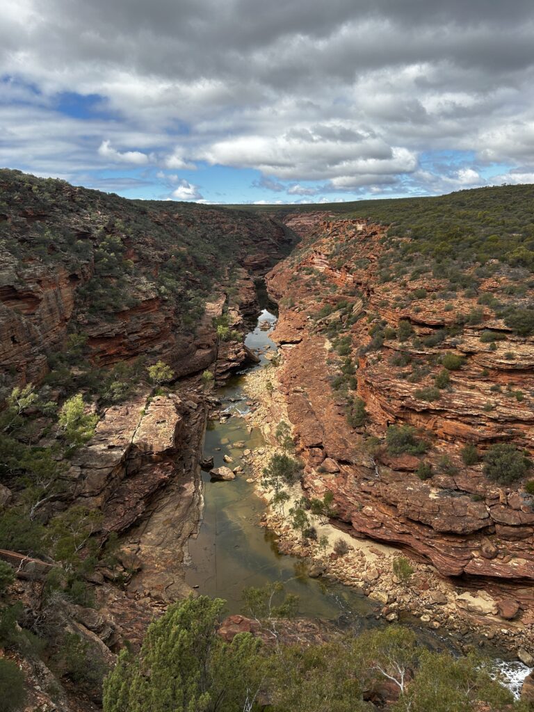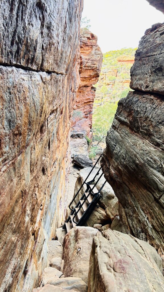 As we had been sitting quite a lot lately, first on the planes then in the car we were eager to get some steps in and doing one of the hikes was just the perfect way to do this. From the z- bend picnic area you can walk down to the z- bend lookout where the river has carved tight bends into the Tumblagooda Sandstone gorge.
