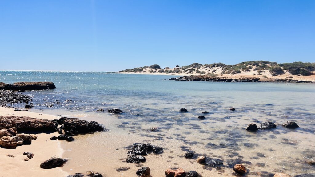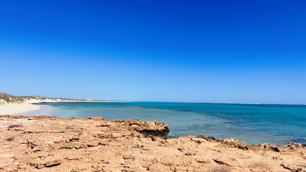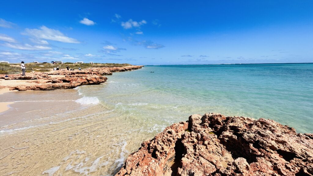 We wanted to do some more snorkeling and headed to Pilgramunna in Cape Range National Park. Standing on the rocks we were searching for turtles. Instead we spotted a big reef shark that swam right by our feet.