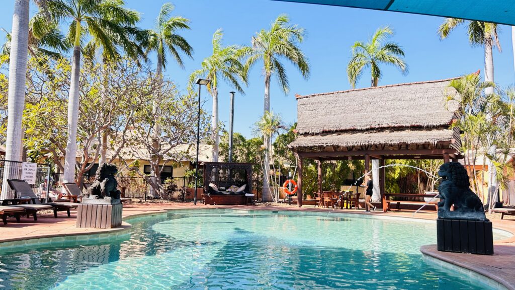 The market is close to Broome airport where we returned our rental car, filled out the damage claim forms for the stone chip in the windshield and then took the Broome Explorer Bus back to our hotel. For the first time on this trip we spent some time by the pool.