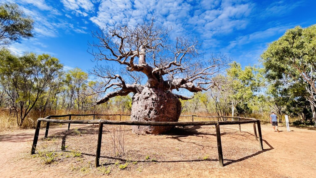 We were picked up really early at our hotel. After collecting more passengers (turned out we were the only foreigners in the group) we drove to the Boab Prison tree. It is difficult to determine the age of a boab tree as they don’t grow bark rings. This specific tree is estimated by experts to be 1500 years old.