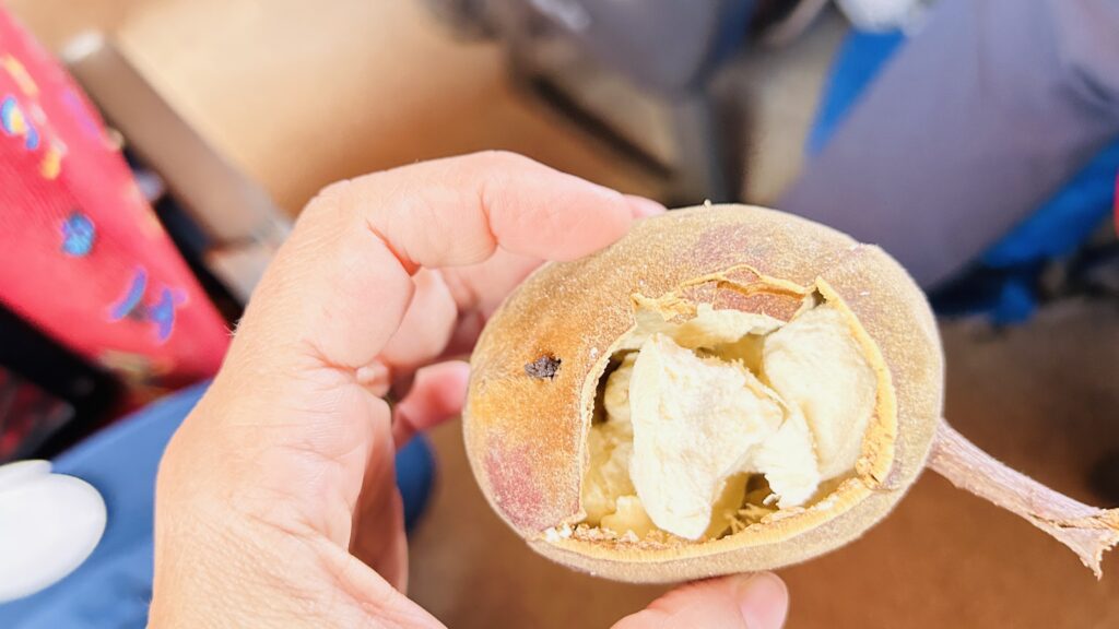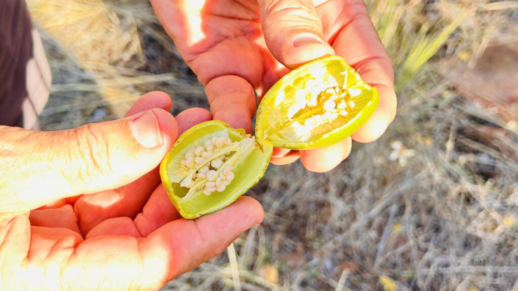 The inside of the boab nut is high in vitamin C and tastes a bit stingy as it is very acidic. It contains four times as much vitamin C as an orange.