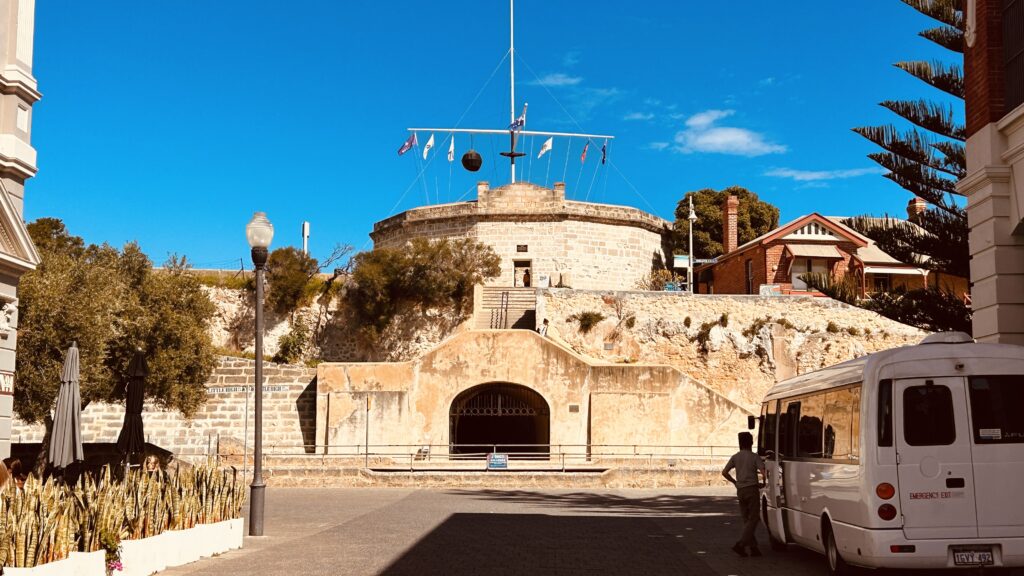 We took the free of charge Freemantle Blue Bus from South Beach that morning to get into the town‘s center and walked to the „Round House“. This building was the first prison in Fremantle when the British tried to establish Freemantle as their colony.