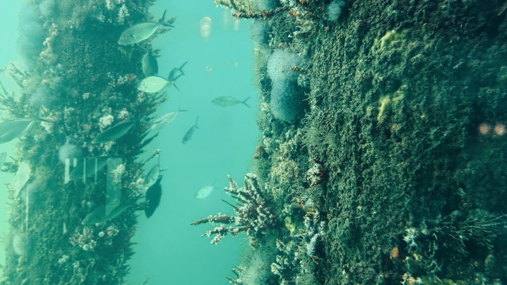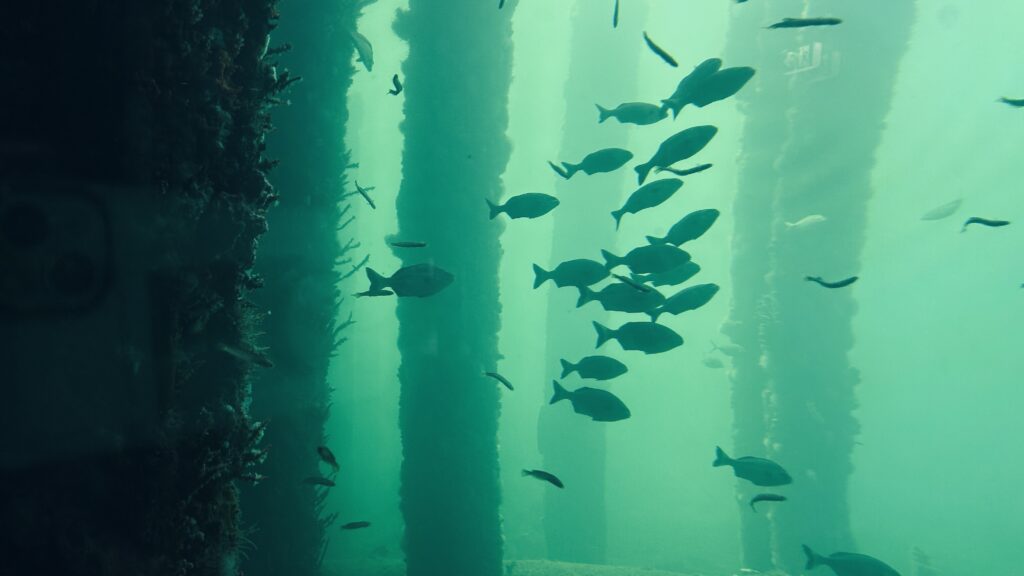 Recently the Busselton Jetty Inc, the non- profit organization taking care if the jetty started installing under water art in order to maximize marine and reef growth in the area. Much of the ocean in the Geographe Bay consists of sea grass. The jetty, originally built as a ship loading structure for the timber industry, acts as a man made reef and attracts a wide variety of sea life. The art work is best seen diving or snorkeling along the jetty.