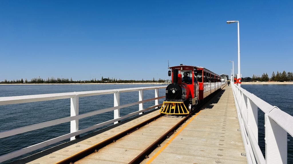 The Observatory is located at the end of the Busselton Jetty. This landmark, at 1.8km long, is the longest timber-piled Jetty in the Southern Hemisphere. A small tourist train takes you out to the far end of the jetty from where you walk down in a huge tank to see different levels of the jetty structure. The construction has been populated by a wide array of sea life and you can watch schools of fish swim by the large glass windows.