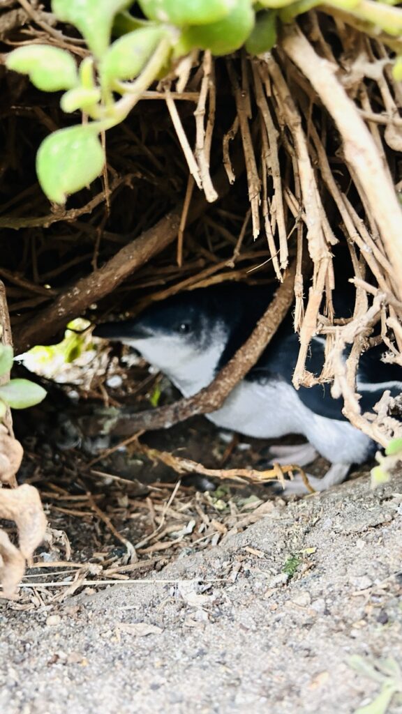 We were on Phillip Island during the little penguins molting period and their lost feathers made spotting the nests a lot easier. Still you had to have a good eye. Apparently hubby did, driving away he spotted this beauty next to the parking lot.