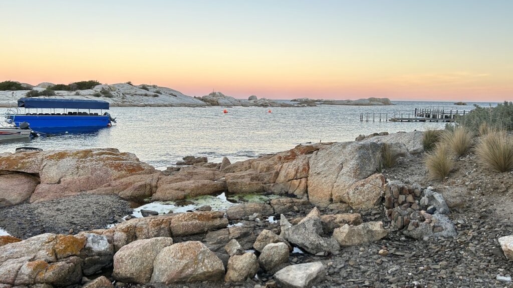 What a wonderful day! We watched the night come up over the rocks of Bicheno and then called it a night.