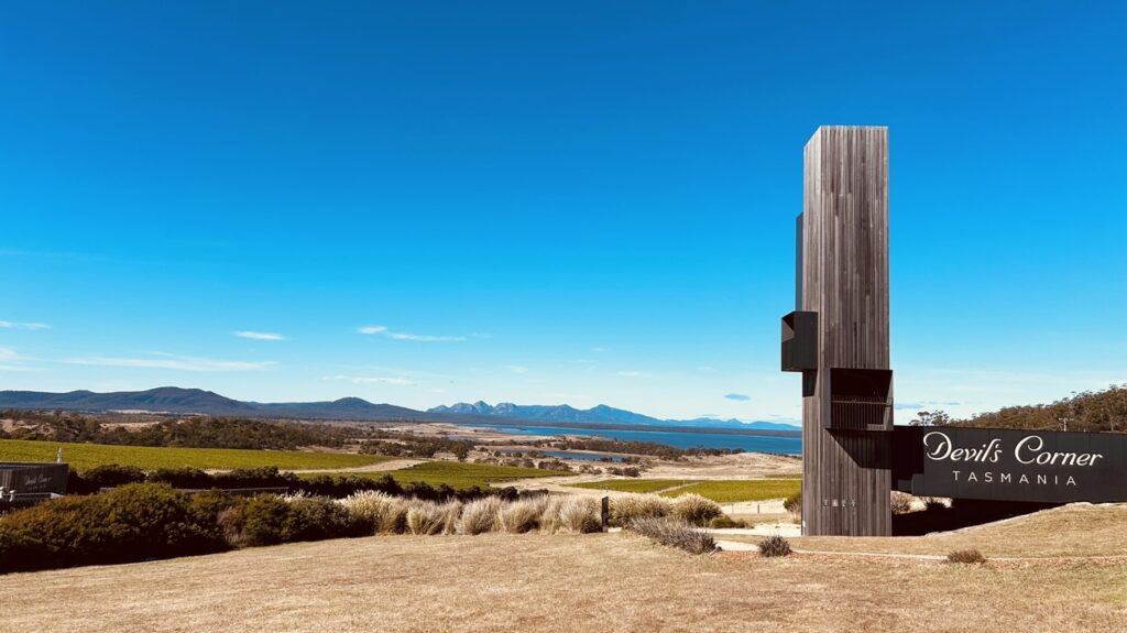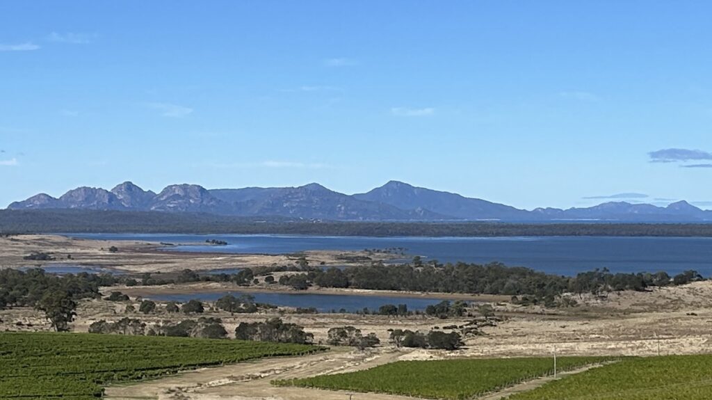 We stopped at a gorgeous winery, Devil’s Corner Winery that is overlooking Moulting Lagoon. They built a viewing tower that draws tourists to their cellar door- quite a smart marketing idea. But the stop is absolutely worth it. They offer food and wine tasting with this can‘t- be- beat view. We were very sad that we did not have time to stop for a meal but we wanted to do the Wineglass Bay hike and had lost too much time with backtracking earlier in the morning.