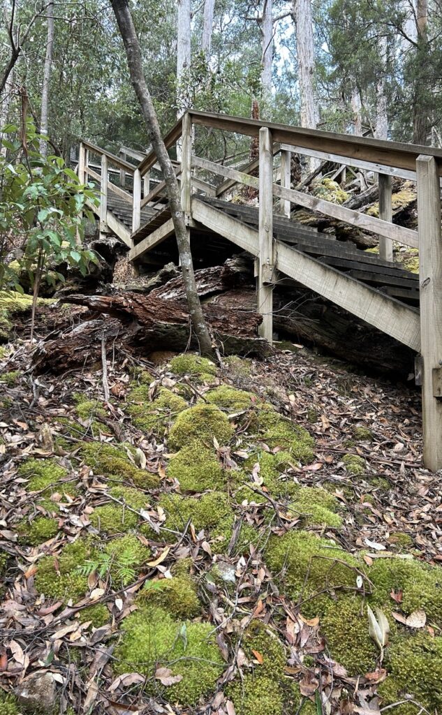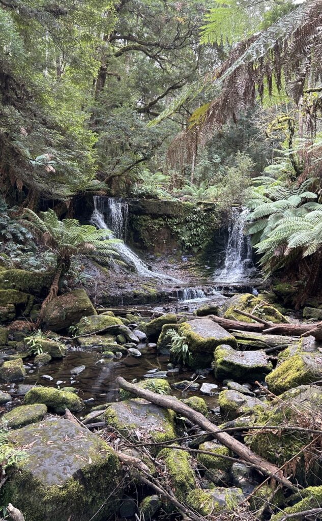 We reached Mount Field National Park in the afternoon. Just enough time to do the „Three Falls Circuit“ that encompasses Russell Falls, Horseshoe Falls, Tall Trees and Lady Barron Falls.