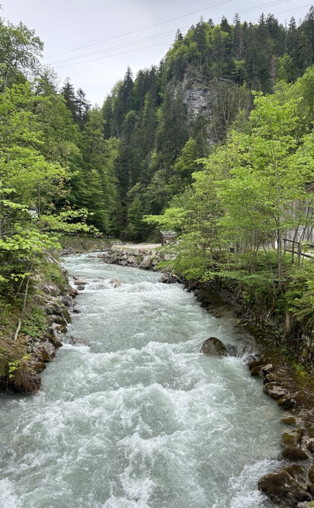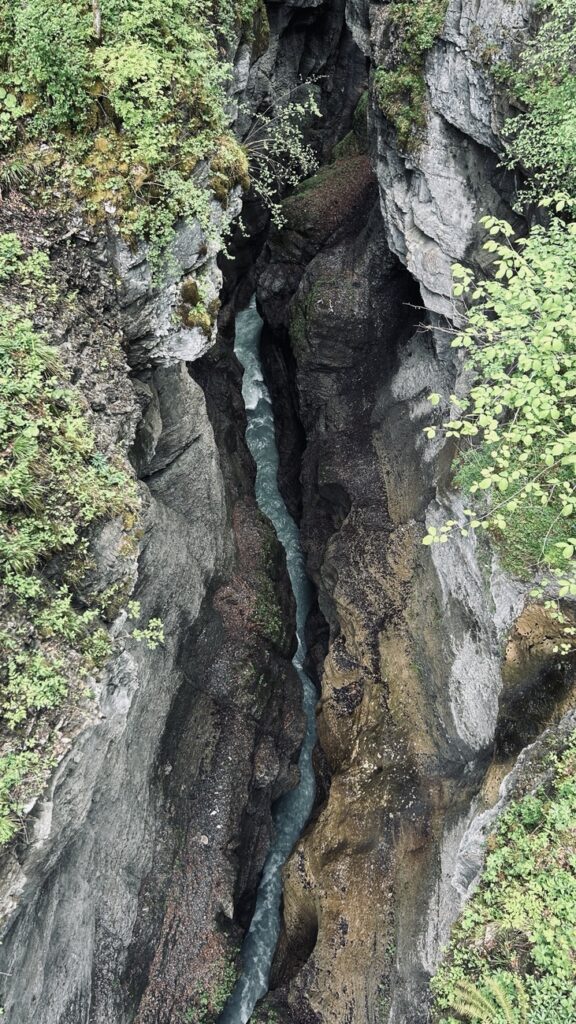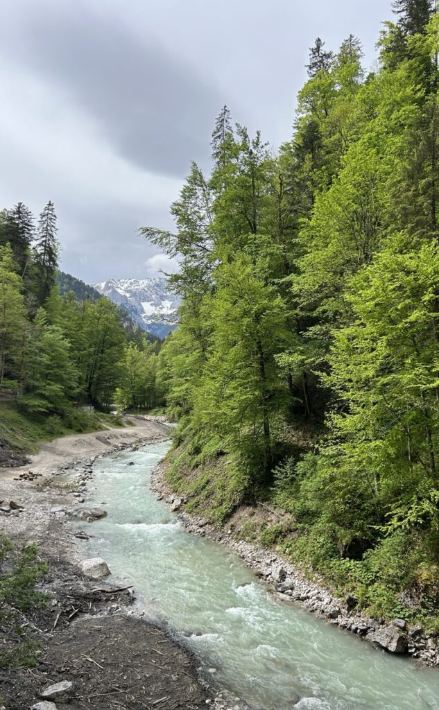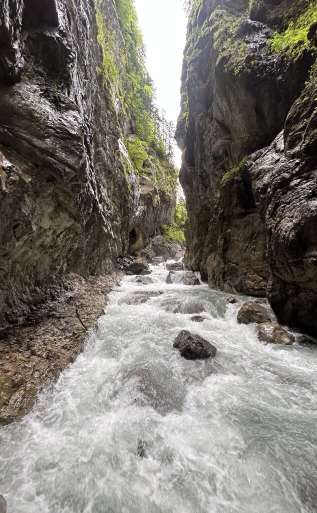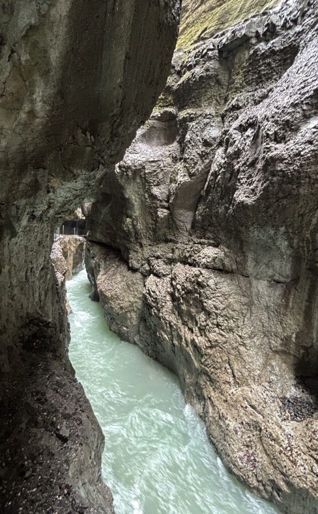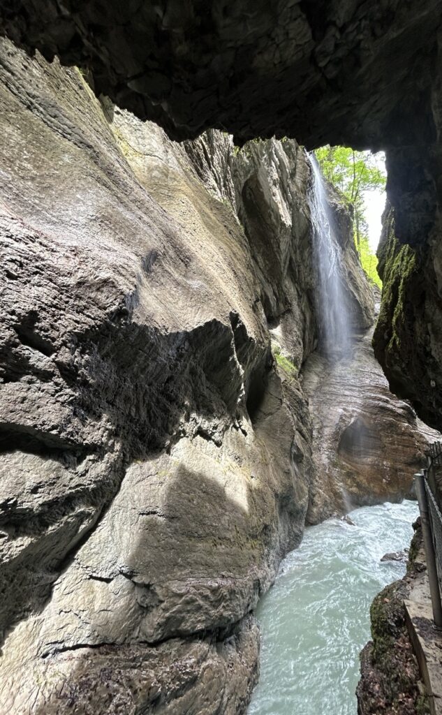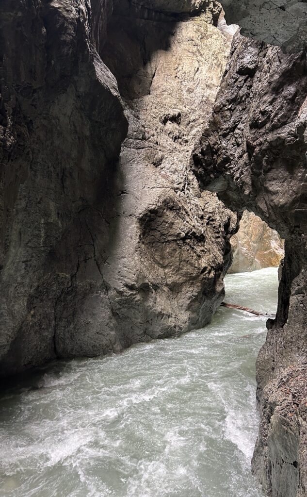 We decided to do the latter and hiked uphill to Partnach Alm. You can take a break at the alm but we decided to keep going and descended to the “Eiserne Bruecke” (iron bridge) to get a view of the gorge from above.