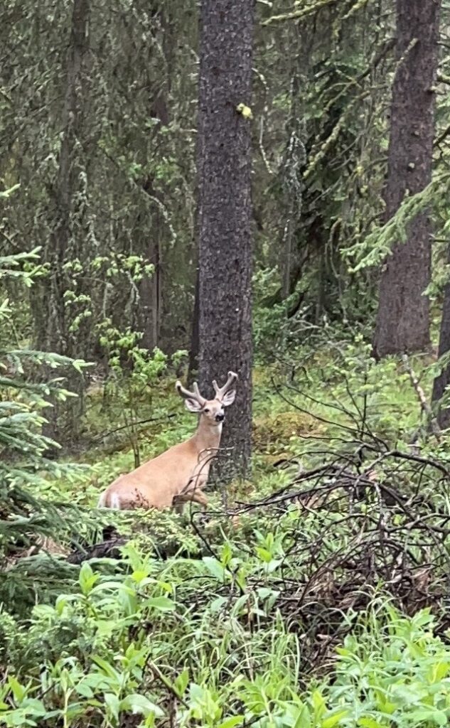 The whole trail was fairly empty and despite a bit of rain that started again on our way down we really enjoyed the marvelous views of the many waterfalls. And once we had almost reached the lodge again we saw this beautiful young moose come out of the woods.