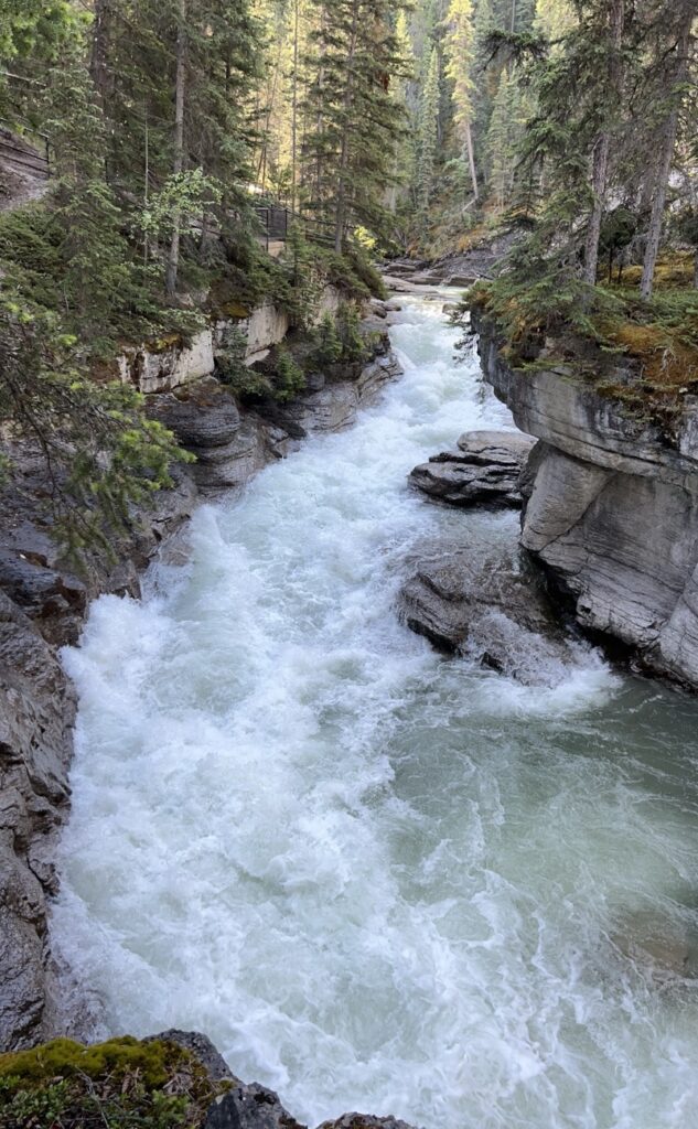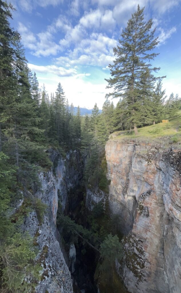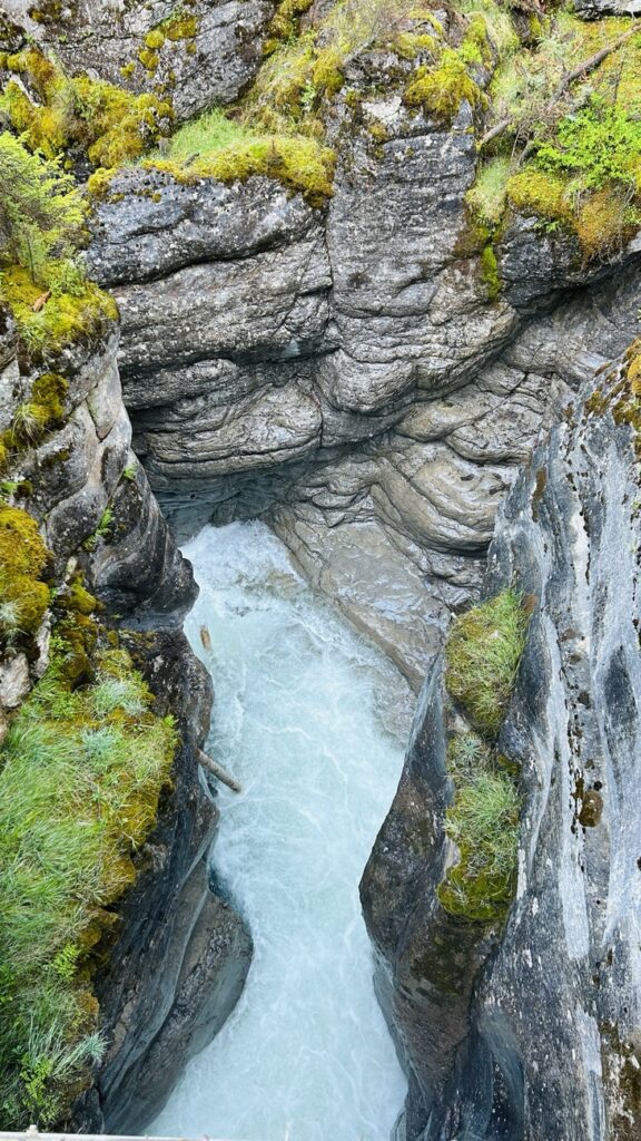 The Maligne Canyon hike is divided by seven bridges. Many people stop after bridge two or three making it a short hike. But we wanted to walk all the way down this stunning canyon. You can return via a path through the woods but we decided not to complete the loop. Instead we doubled back and came up the same way.